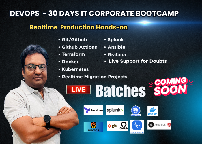 The DevOps 30 Days IT Corporate Bootcamp is an intensive, hands-on, production-focused training program designed to prepare candidates for real DevOps roles in corporate IT environments.